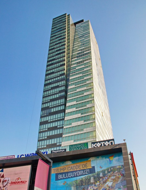 Trump Towers Istanbul is a mixed-use development, bringing an office and a residential tower together on a large, shared podium which houses a major shopping center, and serves as a terminus for intercity bus lines. The ascending and descending form differentiates the floor plans from one another across the height of the two towers. Therefore, rather than a single character to each unit, there is variance.